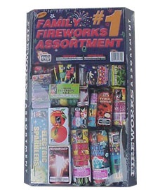 Fireworks Assortment #1 Safe and sane assortment containing small and medium fountains, sparklers and more! Great for any backyard.