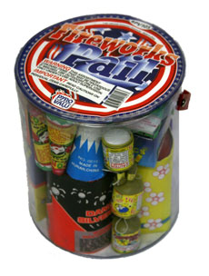 Fireworks Pail Safe and sane assortment containing small and medium sized fountains, poppers and more!